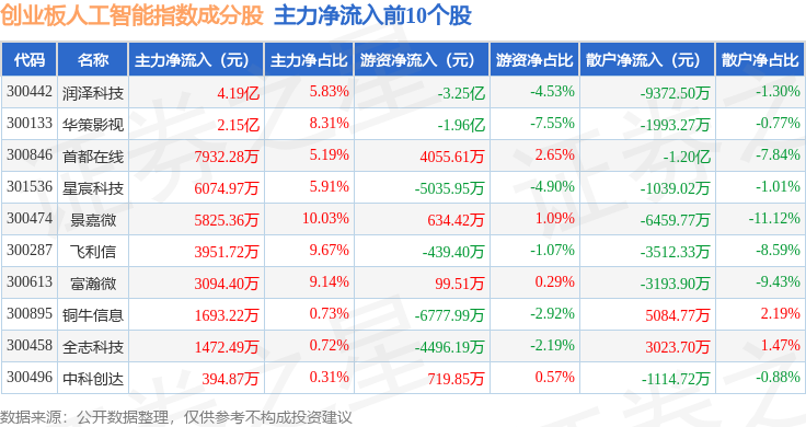 成份股资金流向详情见下表:证券之星动静,